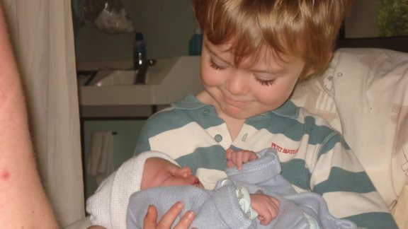 Jonah can’t stop kissing Kate, and saying how much he loves her. Owen gets very worried when she cries. Yesterday, Kate was sleeping in our bed, and Owen got a new book and lay down beside her and started reading the book to her. This morning, Jonah helped get her dressed and ready to go for a walk.