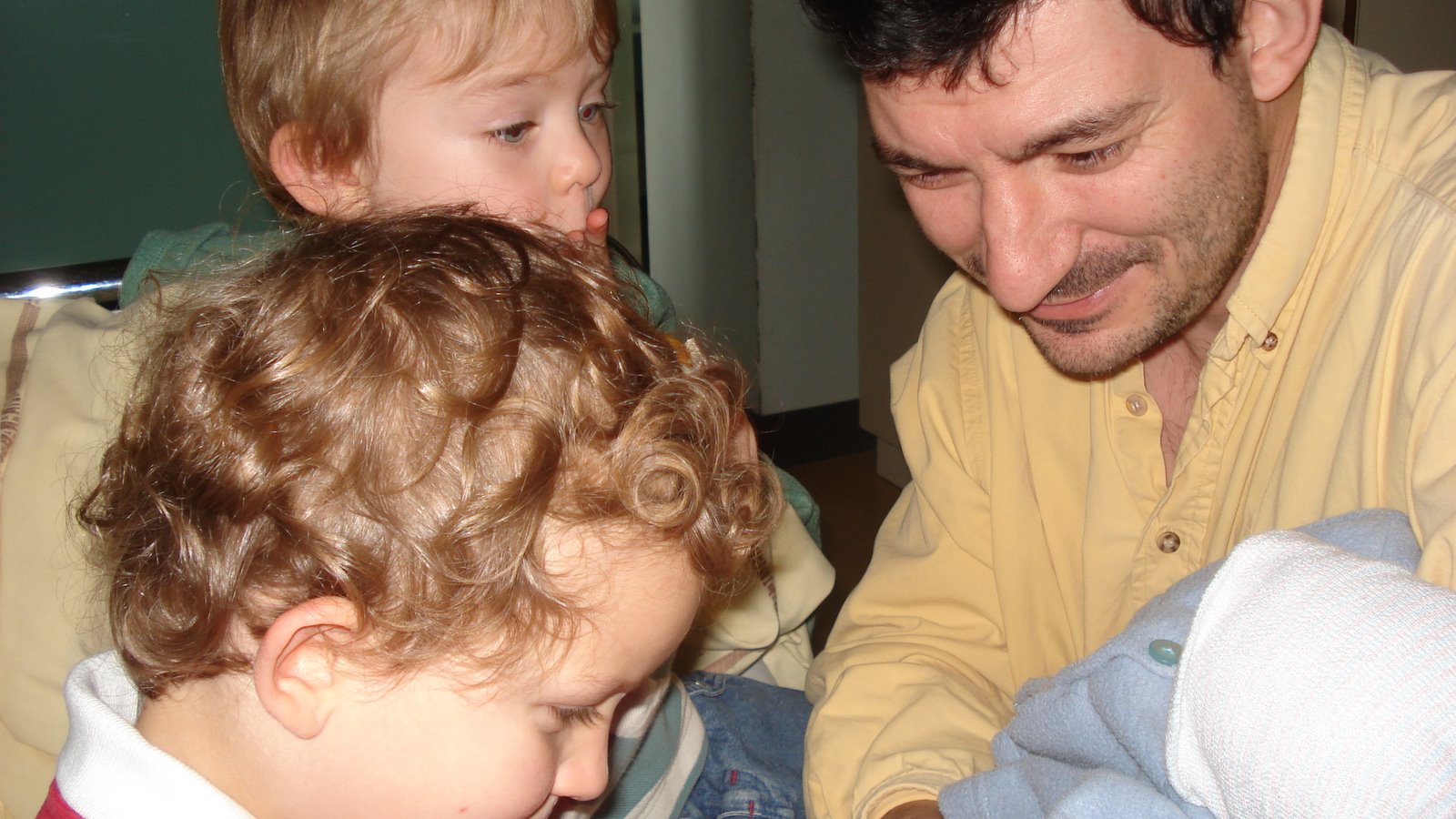 Jonah can’t stop kissing Kate, and saying how much he loves her. Owen gets very worried when she cries. Yesterday, Kate was sleeping in our bed, and Owen got a new book and lay down beside her and started reading the book to her. This morning, Jonah helped get her dressed and ready to go for a walk.