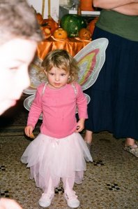 Thanks to the kindness of (near) strangers, we have photographic evidence that Kate did, in fact, have a Halloween costume this year. I went as an overworked mother of three- you can see my feet just behind her. She is, as always, much cuter than I am.