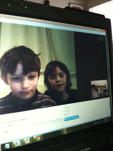 Skype Definitely a first world moment: photos taken on an iPhone of a Skype chat with my kids in France and me in the US. Related