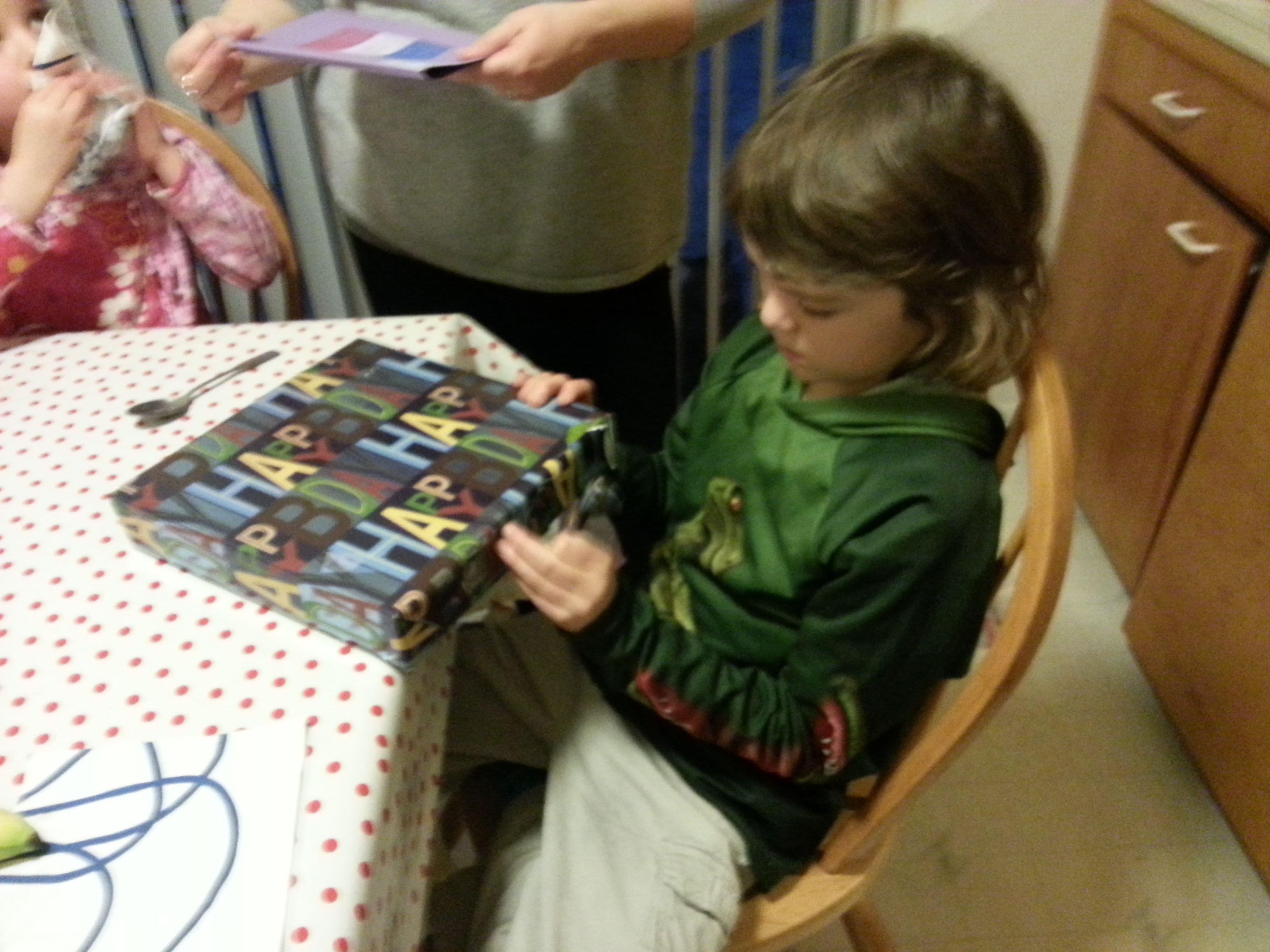 We had a small party at home the weekend before his birthday, with three friends coming over for a sleepover. That was a mixed success, with one of the kids needing to go home in the middle of the night because he was too scared to spend the night. Jonah’s actual birthday fell during the week, so he also cele