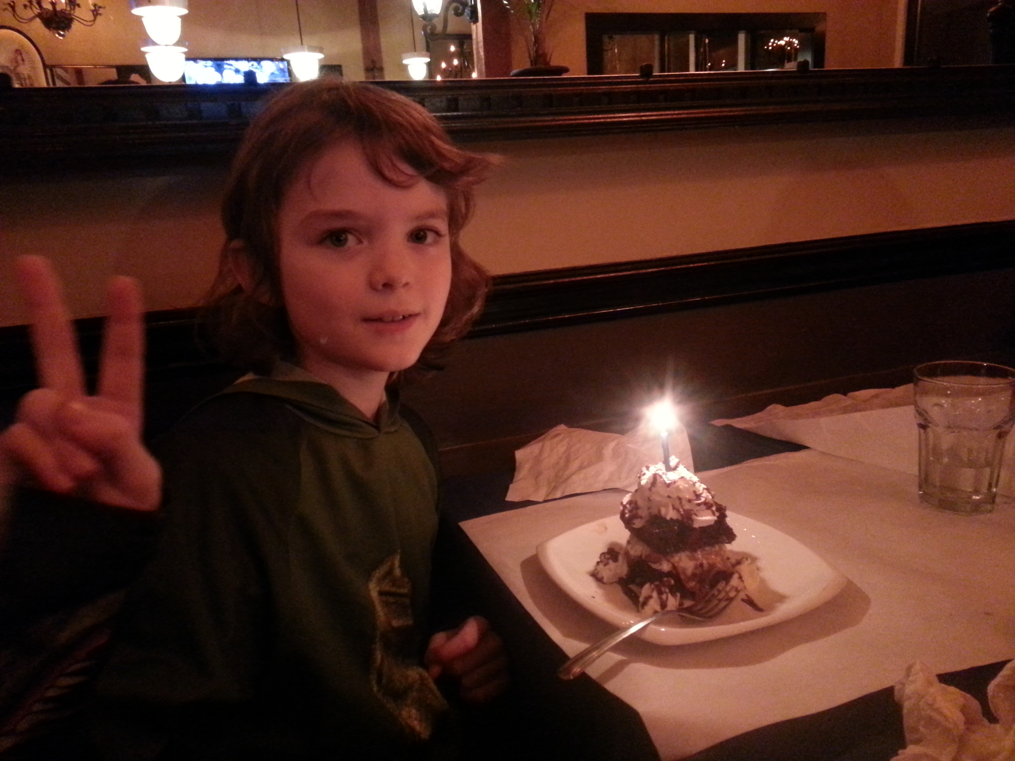 brated at school. Apparently the tradition at View Ridge is to bring in popsicles as a snack to celebrate a child’s birthdays; I don’t know if that is just how it is, or if it is because of allergies and so on. So we brought popsicles to school, then opened presents at home, followed by dinner out at the neighborhood Greek restaurant, Jonah’s choice. A good time was had by all.