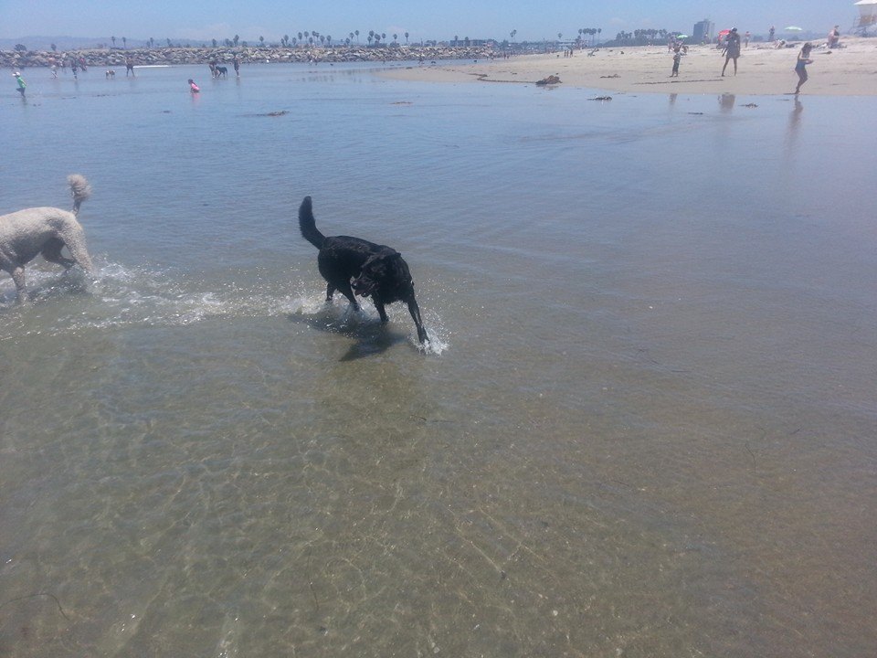 The day after Sea World we needed to be out of the hotel room by noon, but couldn’t meet my grandfather until 5 or so, so we needed to kill some time. We stayed at the room as long as possible in order to do laundry and pack the car, but got to the beach in time for a picnic (although on second thought, bringing ham sandwiches and chips to a dog park was maybe not the smartest thing to do). Even though it was a Monday, around 11 am, it was much more crowded than the previous day.