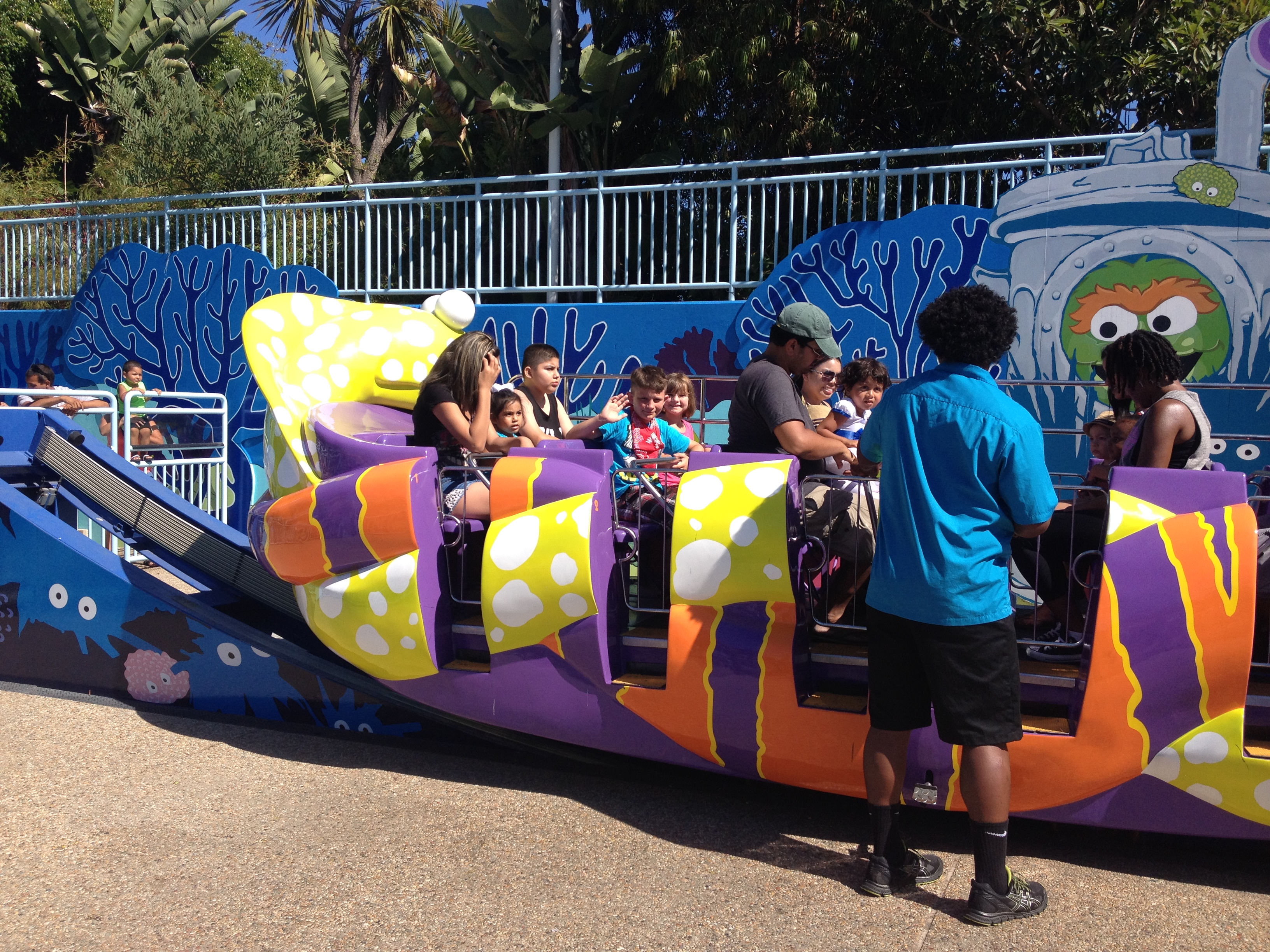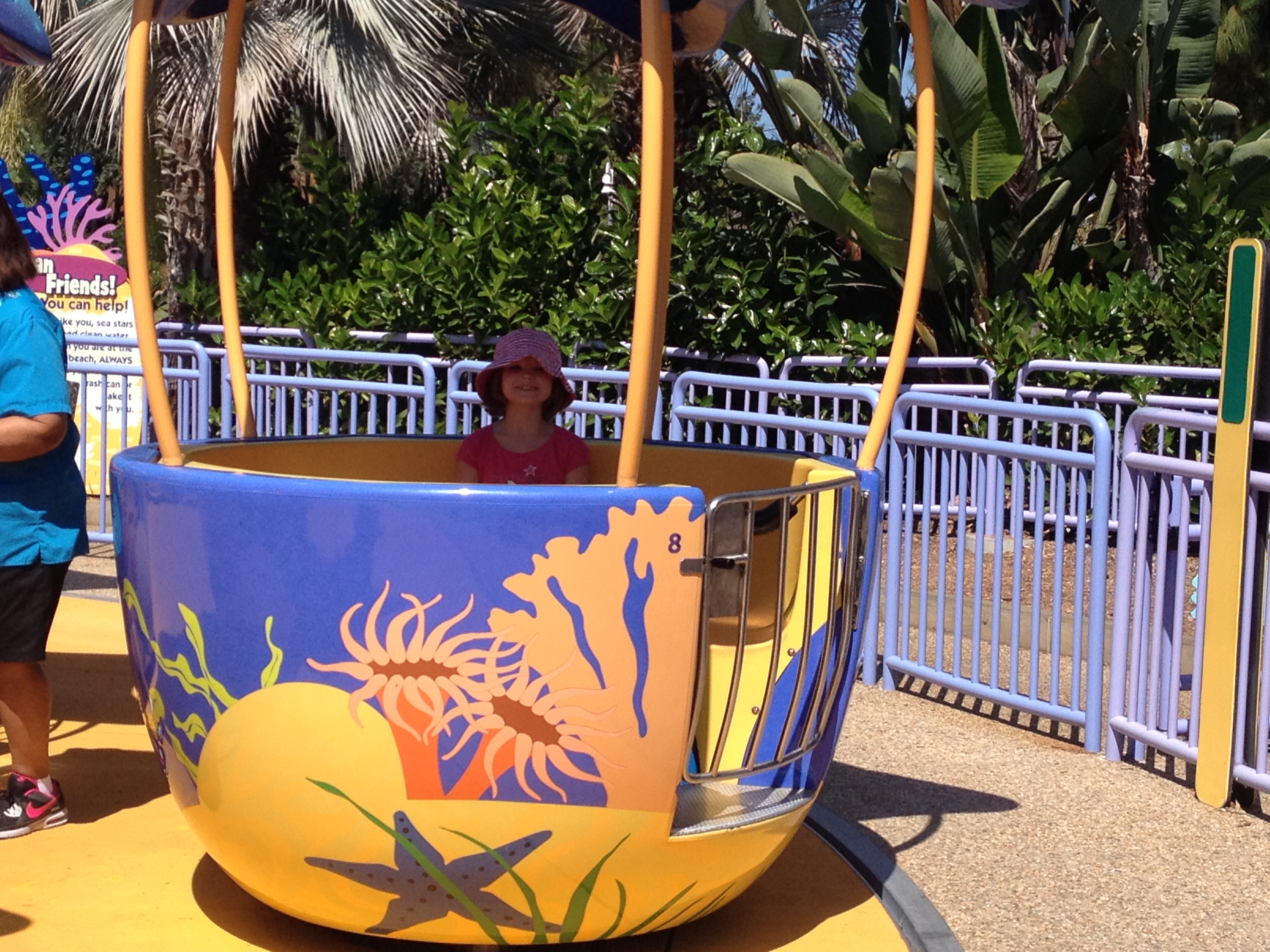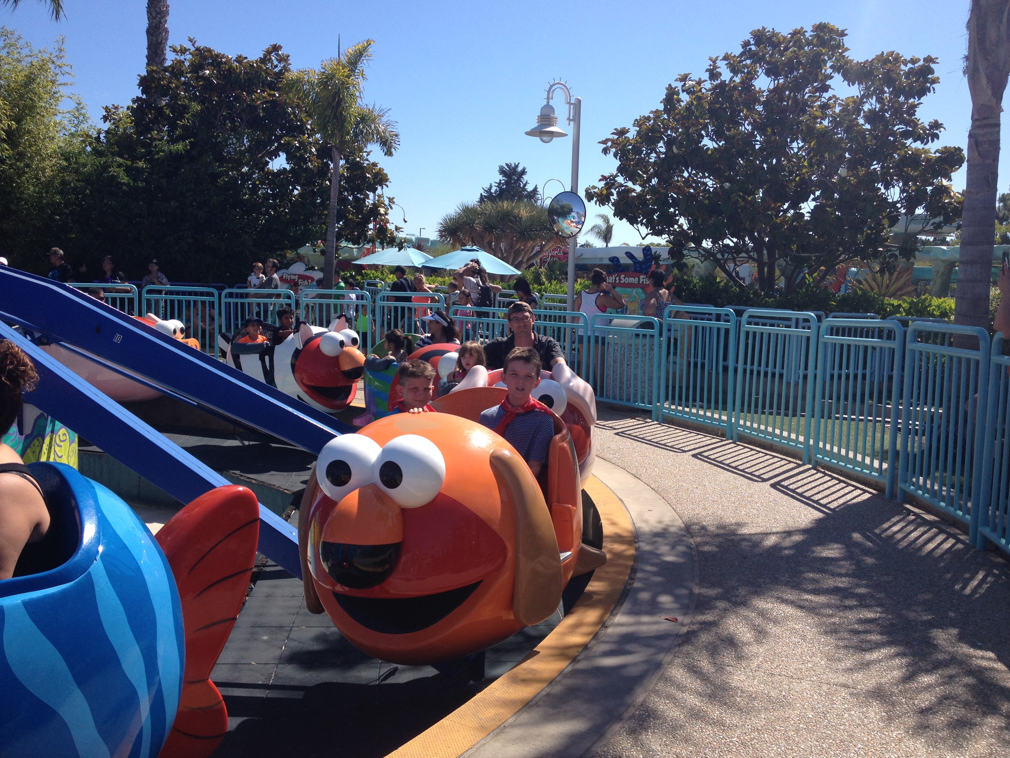 Kate and I did the Elmo Flying Fish ride while the boys went to a big scary roller coaster. Then she did the spinning tea cups by herself because I decided it wouldn’t be a good idea to vomit so early in the day.
