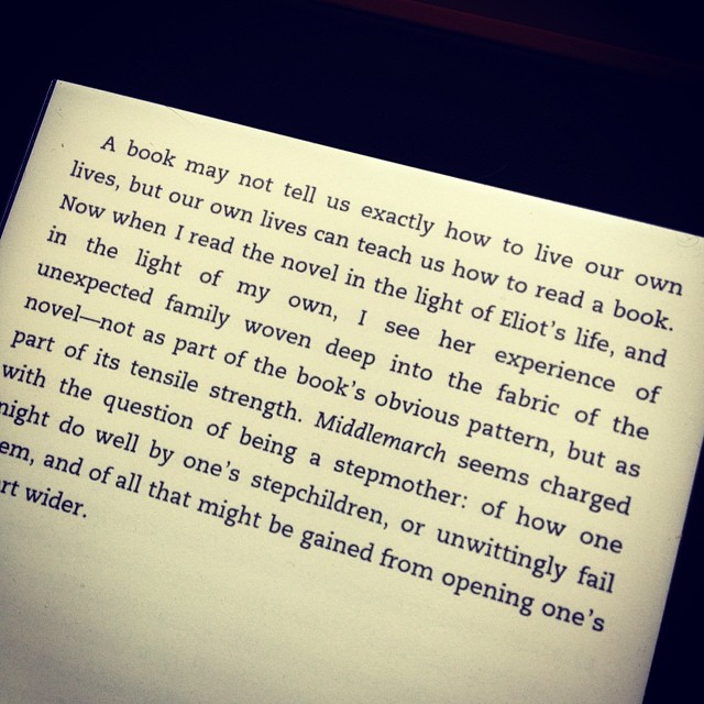 Previous ImageNext Image Love this quote from My Life in Middlemarch. “Our own lives can teach us how to read a book.”